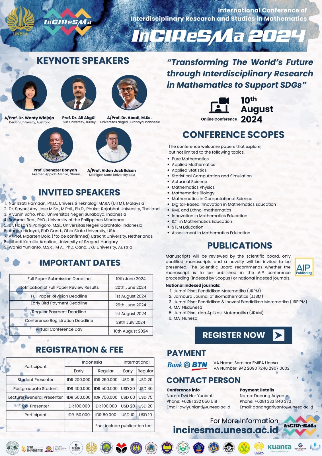 📢 INTERDISCIPLINARY RESEARCH AND STUDIES IN MATHEMATICS (InCIReSMa) CALL FOR PAPER 📢Theme“Transforming the World’s Future through Interdis