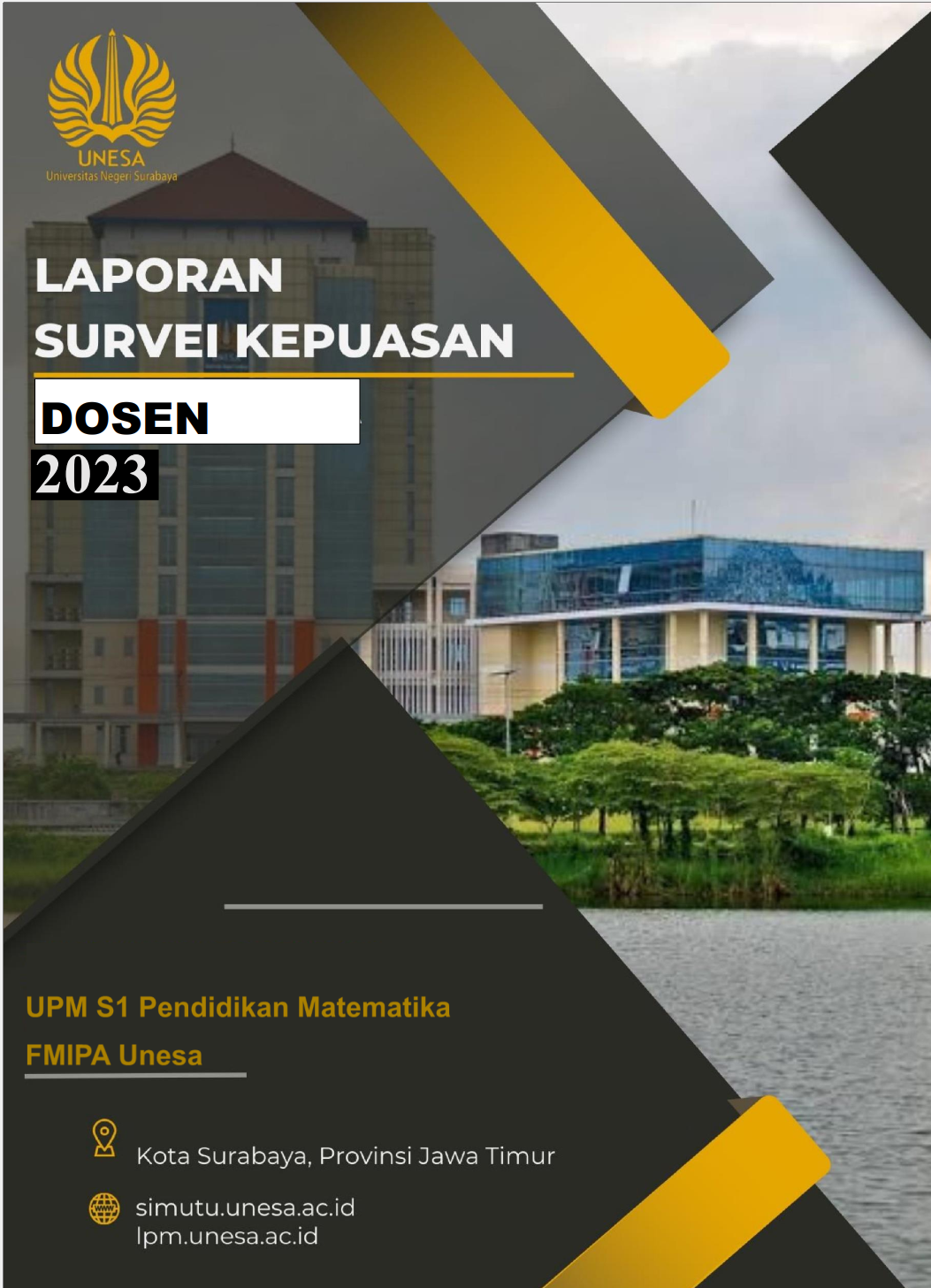 Berikut ini adalah laporan survei kepuasan Dosen dan Mahasiswa Program S-1 Pendidikan Matematika Universitas Negeri Surabaya (Unesa) tahun 2023.